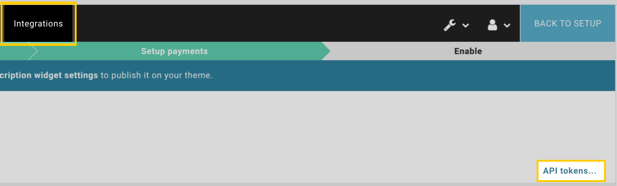 - Click on the Integrations tab, and then click API tokens….